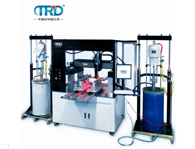 (2)全自動型灌膠機,該類灌膠機可完成于膠水各種各樣比例全自動配制,但此種類的灌膠機沒有運動控制系統服務平臺,立即將膠引入要灌的產品中,一般適用LEDled節能燈,開關電源。(3)全自動灌膠機,該類灌膠機不僅可完成膠水的多種多樣比例全自動混和,可完成1:1---10:1比例區段混和灌膠工作規定,而且含有運動控制系統服務平臺,可走平行線,或三維途徑,在其中以走三維途徑的比較高檔,一般通過電腦控制,適用多種類型的產品。全自動灌膠機運用于大規模灌膠,灌膠規定較為勻稱的產品,在其中以LED摸組灌膠的更為占多數。