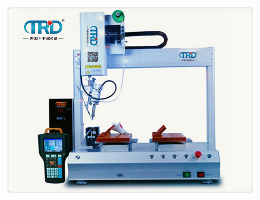 產(chǎn)品介紹TH-5331H四軸雙平臺自動焊錫機可對各種工件進(jìn)行高速拖焊,點焊,斜線焊接等。解決了人工重復(fù)性焊接動作出現(xiàn)的焊點不均勻、虛焊等現(xiàn)象。我們的優(yōu)勢是焊點一致性好,品質(zhì)穩(wěn)定。自動焊錫機操作簡單,生產(chǎn)效率高、焊接質(zhì)量好、環(huán)保又節(jié)能、初學(xué)者也能達(dá)到熟練工人的焊接效果。本機采用簡易快速地輸入焊錫程序,其軟件并具有強大的編輯功能,可輕易、快速的完成程序教導(dǎo)。 產(chǎn)品用途 本機廣泛應(yīng)用于汽車電子、數(shù)碼、電子、LCD、線路板、分支器、電子調(diào)節(jié)器、LED、電聲、FPC焊錫、馬達(dá)、通訊耦合器防盜器線材行業(yè)USB的焊接等生產(chǎn)行業(yè)中的焊錫設(shè)備。 產(chǎn)品特點 ◆ 節(jié)省錫線,無錫線浪費。焊點均勻一致性好 ◆ 快速回溫的TM烙鐵頭可安裝于全系列機種為將來“無鉛焊錫”的趨勢所設(shè)計 ◆ 高精度的熱電耦位于烙鐵最前端,所以能感測到烙鐵頭前端溫度的細(xì)微變化。 ◆ 大功率加熱控制器,保證連續(xù)焊錫的穩(wěn)定性。 ◆ 焊錫方式多種多樣,全部工藝參數(shù)可由客戶自行設(shè)置,以適應(yīng)各種高難度的焊錫作業(yè)和微焊錫工藝 ◆ 高度可靠的金屬防靜電模式設(shè)計,焊接敏感組件更安全 ◆ 有效地提高焊錫工藝品質(zhì),實現(xiàn)了焊錫過程的自動化與智能化 ◆ 錫絲送錫位置:可調(diào)式,有精密螺絲控制 ◆ 雙焊錫頭,一個動作焊接兩個焊點。 技術(shù)參數(shù)