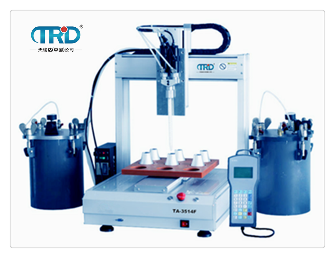 TB-3310AB雙液自動點膠機可對各種工件進行自動點膠作業。解決了人工重復性點膠動作出現的點膠不均勻等現象。并可以提升效率,節省人力。可替代人工特定的點膠作業,實現機械化生產。自動點膠機操作簡單,生產效率高、點膠質量好、環保又節能、初學者也能達到熟練工人的點膠效果。本機采用簡易快速地輸入點膠程序,其軟件并具有強大的編輯功能,可輕易、快速的完成程序教導。