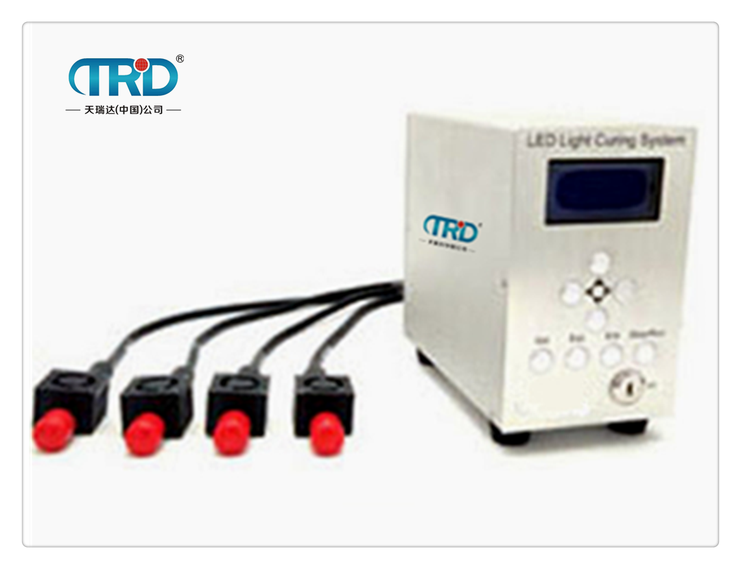 天瑞達TUV-D402紫外線標準4頭UV點光源固化設備,通過電→光能量的轉換使LED(國外進口)大功率紫外線二極管芯片產生的高純度 365、385、395、405 等波段的紫外光,能量高度集中在紫外膠固化,油墨干燥所需要的波長段,是傳統光纖高壓汞燈式點光源機的換代產品。適用于 手機元件裝配、馬達及元件裝配、半導體芯片等