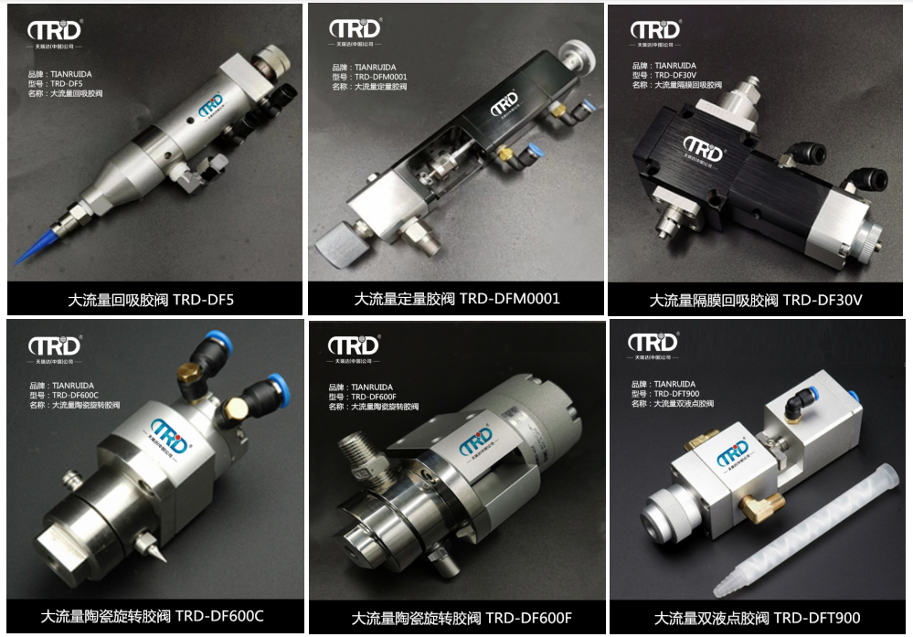 TRD-DF5大流量回吸膠閥是由點膠閥本身結構形成,不是真空回吸來影響的;回吸的來源是由于點膠閥中心桿鎖膠的瞬間是往上提升的,把點膠針頭的膠水,一下就回吸回去了。適用于中稠度或者高稠度的膠水;比如硅膠、黃膠等比較粘稠的流體或膏體,附帶回吸功能。 附帶活塞行程調整結構和防止液漏的回吸結構。大口徑設計,大流量回吸膠閥。輔助進氣口空氣輔助閉合