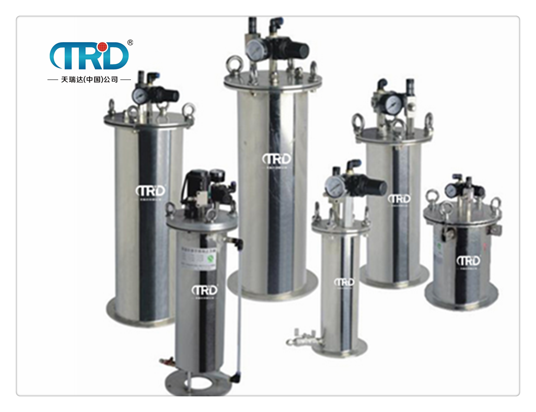 ◆ 每個液料壓力桶都配有精密恒壓調(diào)壓閥,維持從壓力桶至點膠閥的流體壓力。液料壓力筒的開關(guān)是簡單的夾緊方式,結(jié)構(gòu)上內(nèi)部面和下部面相同,可以使用內(nèi)部容器。